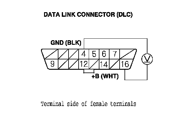 25. Measure the voltage between DLC terminal No. 16 and body ground.