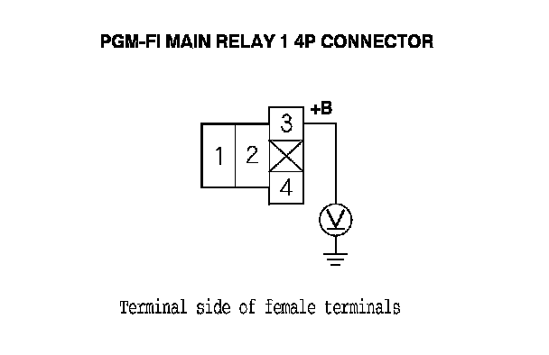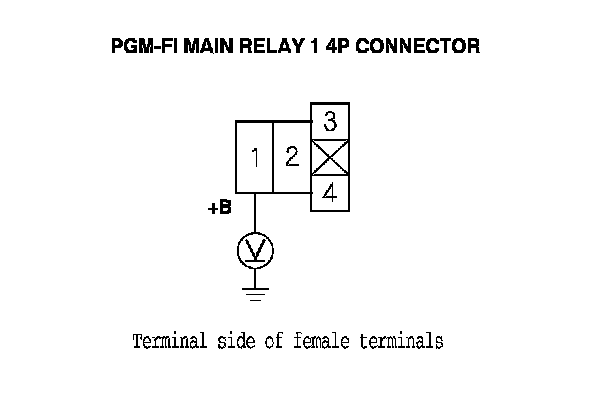 62. Measure the voltage between PGM-FI main relay 1 4P connector terminal No. 1 and body ground.