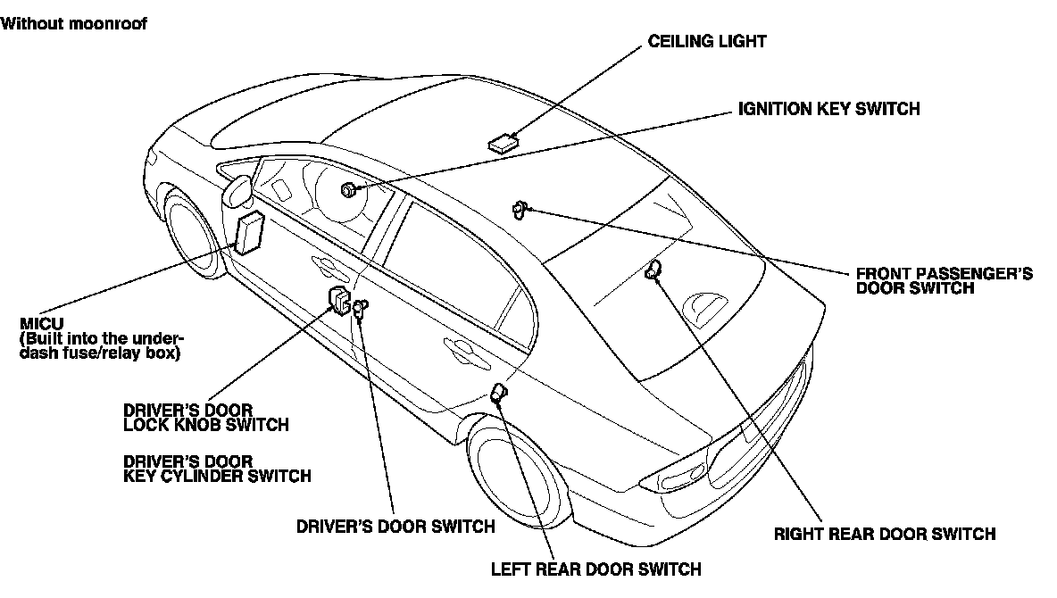 Entry Lights Control System Component Location Index (4-Door With Moonroof)