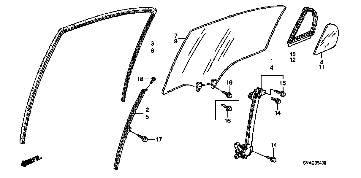 Rear Door, Rear Door Glass - Door Regulator: