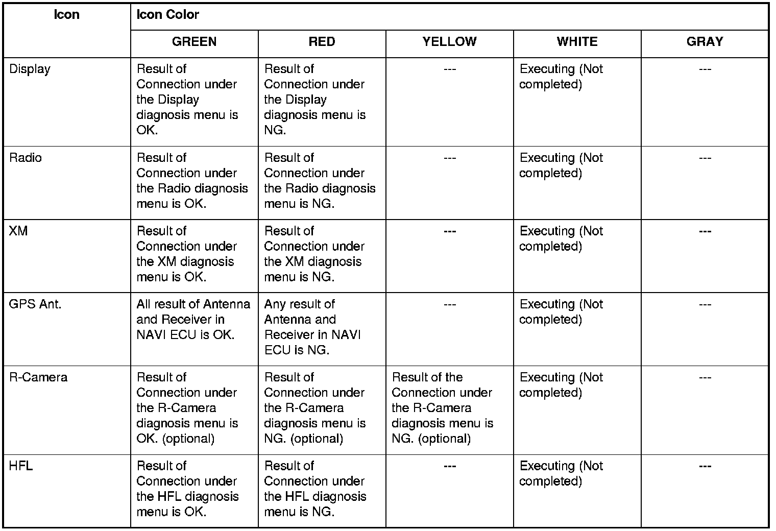 If you touch the any icons on the screen, the icon color changes while pressing the icon. If any icons of the screen doesn't respond, replace the audio-navigation unit. Audio-Navigation Unit Removal/Installation (With Navigation)