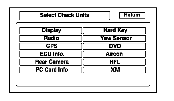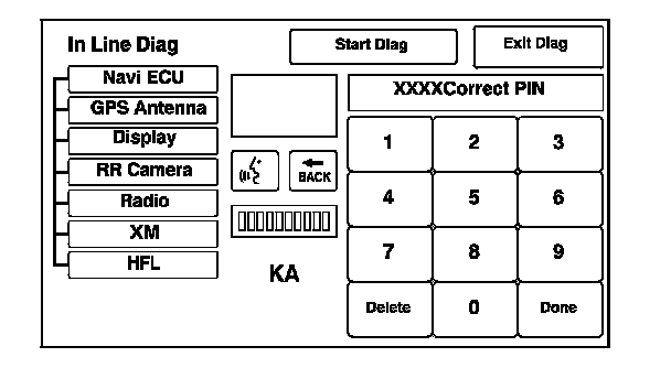 When a audio-navigation unit is powered up for the first time at the factory or after replacement with a new or remanufactured audio-navigation unit, the factory diagnosis screen (In Line Diag) appears. Normally the factory does the steps necessary to verify proper operation and terminate the factory diagnosis.
