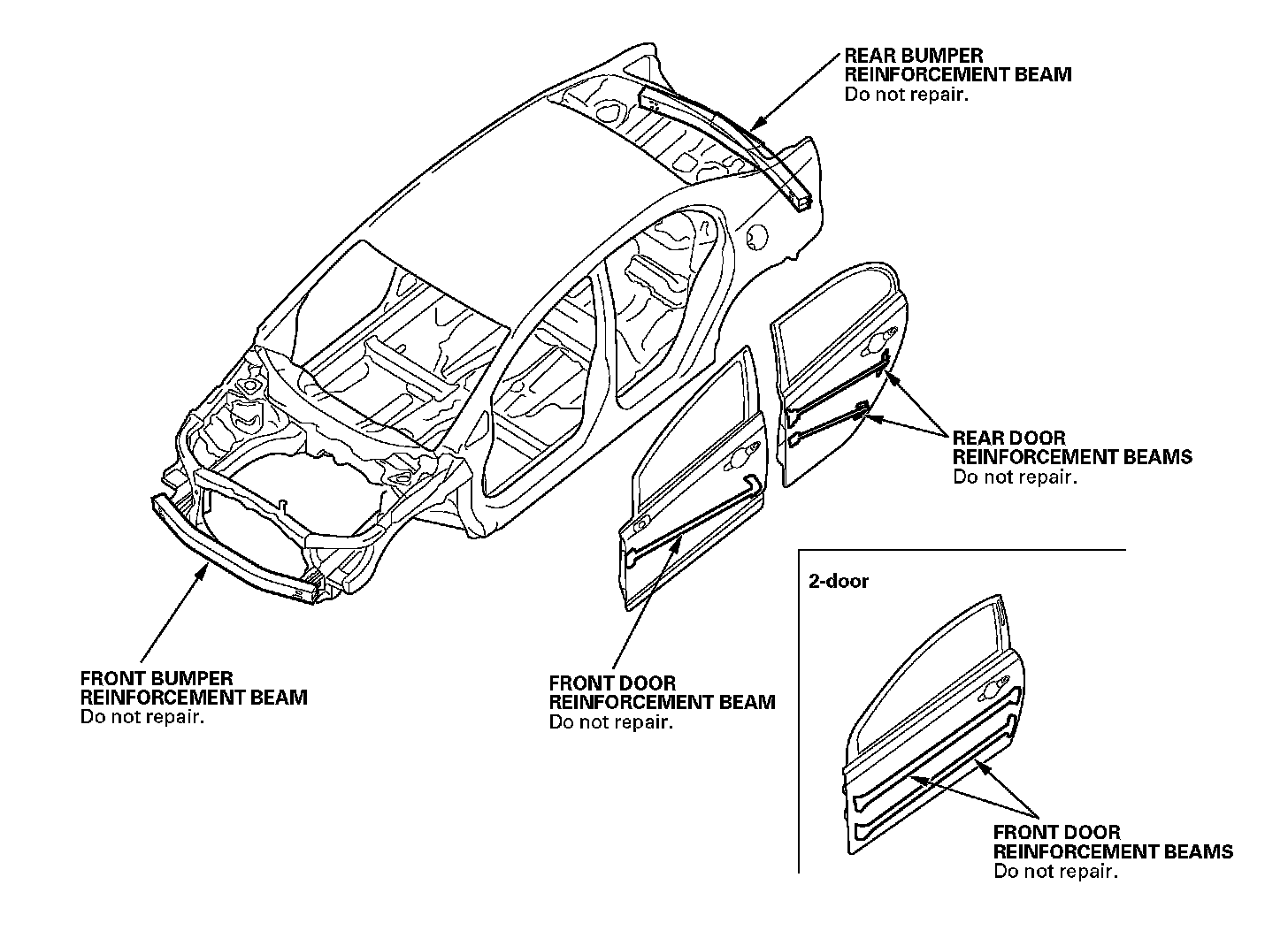 For this reason, door and bumper reinforcement beams should NEVER be repaired; they should be replaced if they are damaged.