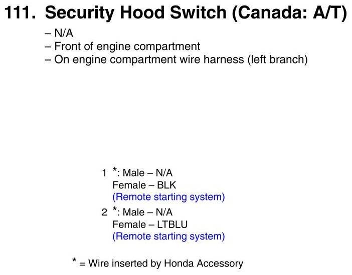 View 111 - Security Hood Switch Connector View (Canada: A/T)