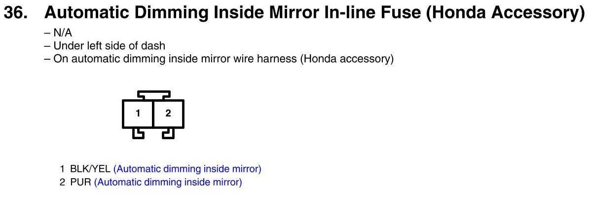 Automatic Dimming Inside Mirror In-Line Fuse Connector View (Honda Accessory)