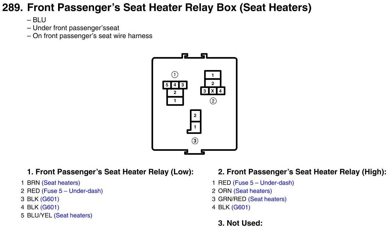 Seat Heater Relay Box, Front Passengers Connector View (Seat Heaters)