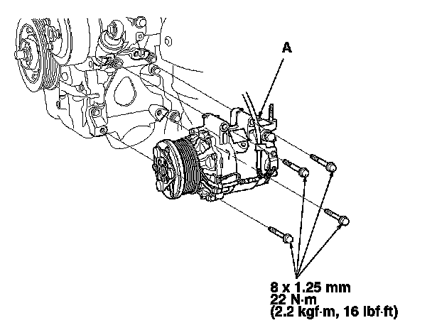 7. Install the A/C compressor in the reverse order of removal, and note these items: