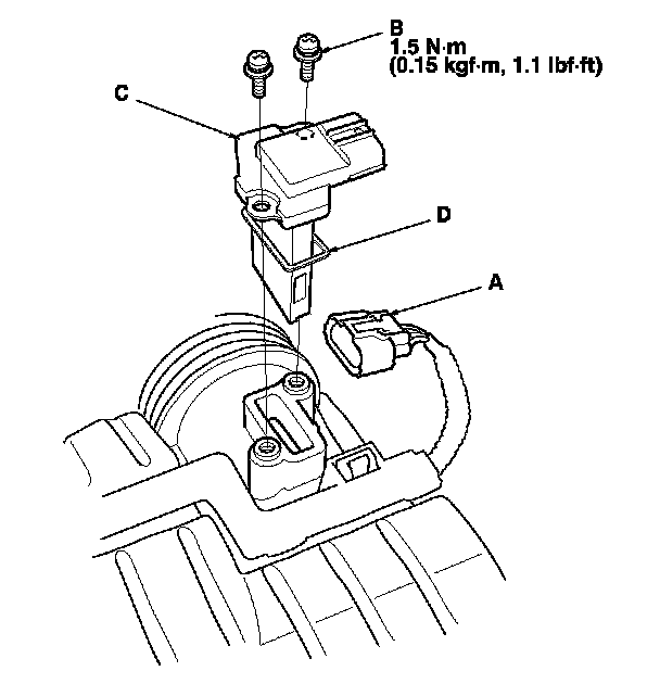 1. Disconnect the MAF sensor/IAT sensor 5P connector (A).