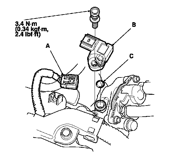 4. Install the parts in the reverse order of removal with a new O-ring (C).