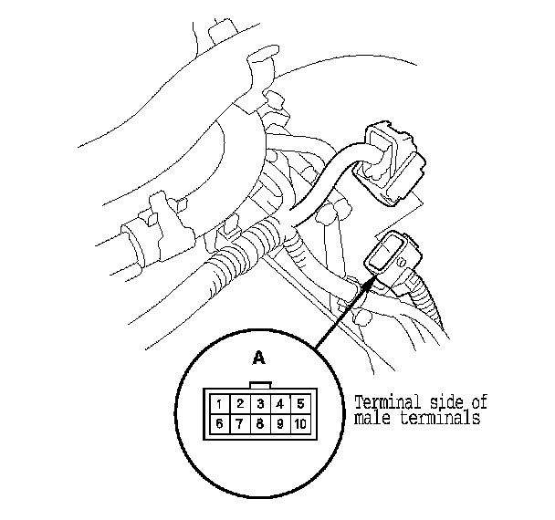 2. Disconnect the transmission range switch subharness connector (A).