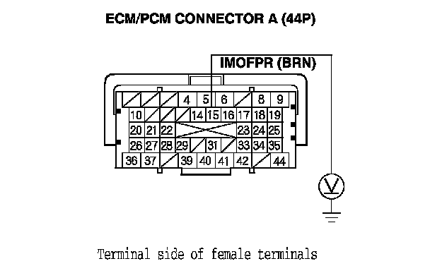 22. Measure the voltage between ECM/PCM connector terminal A15 and body ground.