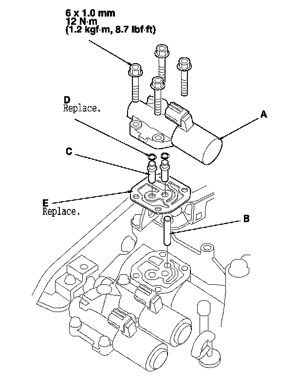 15. Clean the mounting surfaces and the fluid passages of the solenoid valve body and the transmission housing.
