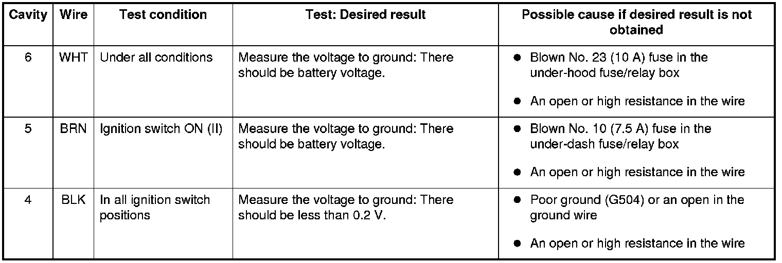 4. With the connector still disconnected, do the following input tests: