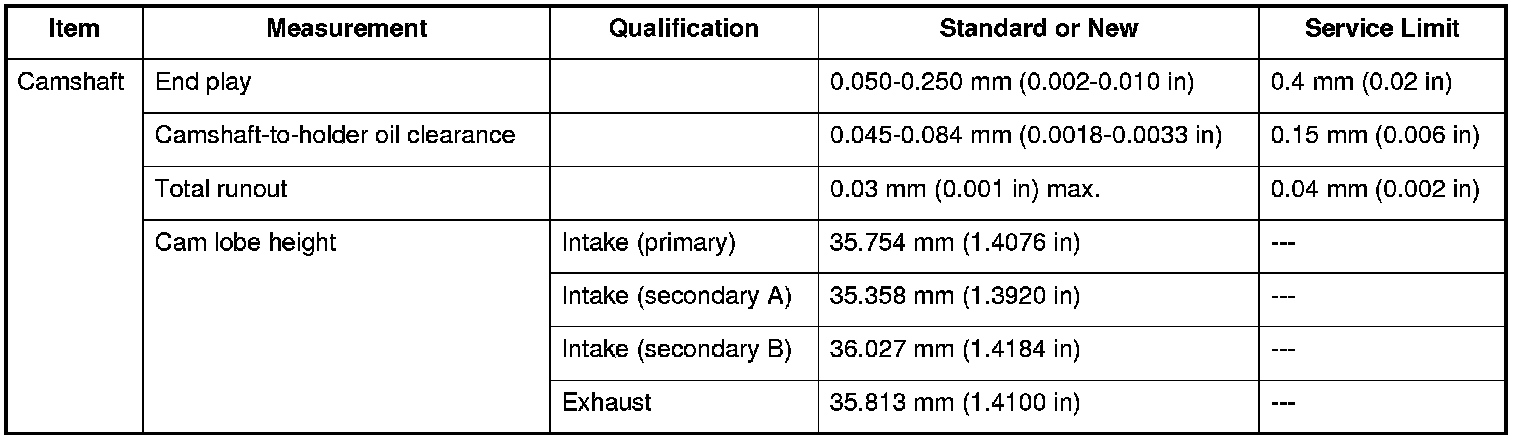 Camshaft Specifications