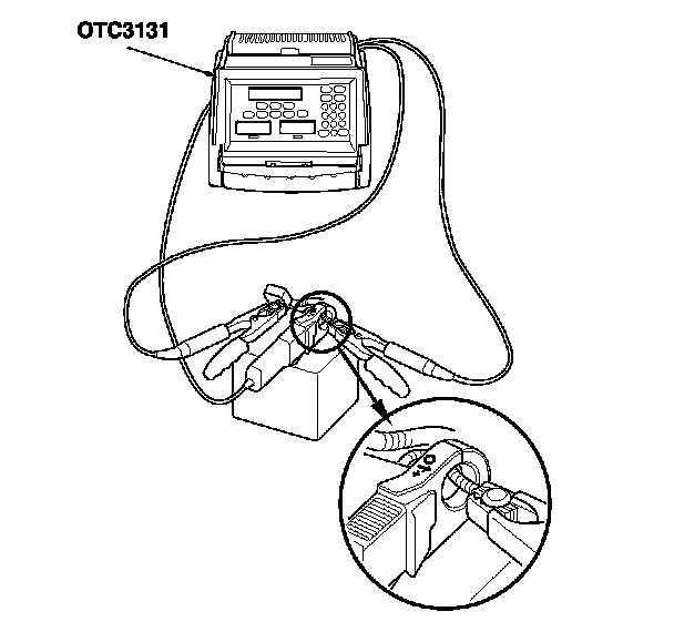2. Connect the alternator, regulator, battery & starter tester (OTC3131) to the battery as shown.