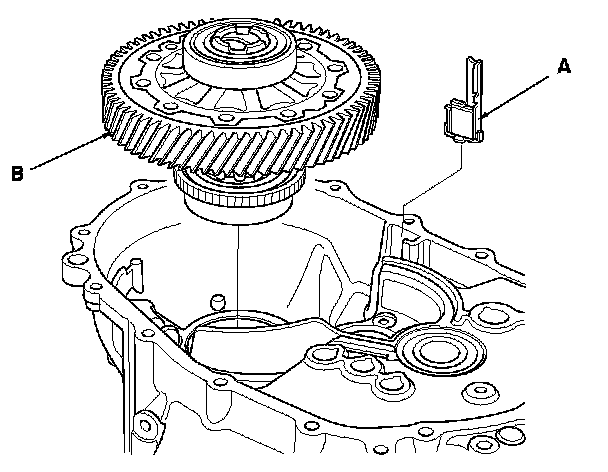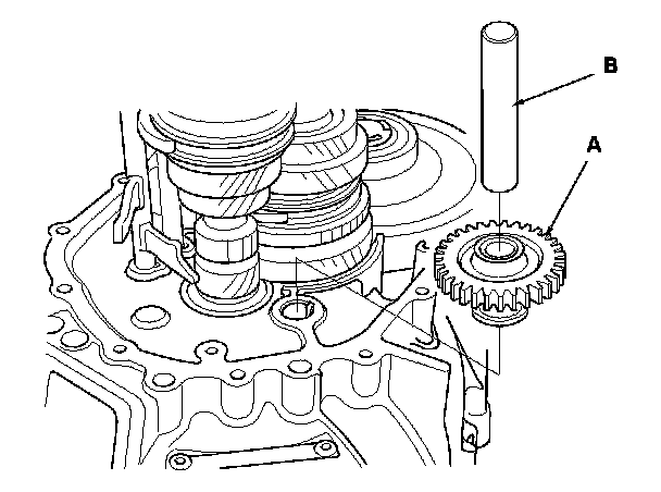 4. Install the reverse idler gear (A) and the reverse idler gear shaft (B).