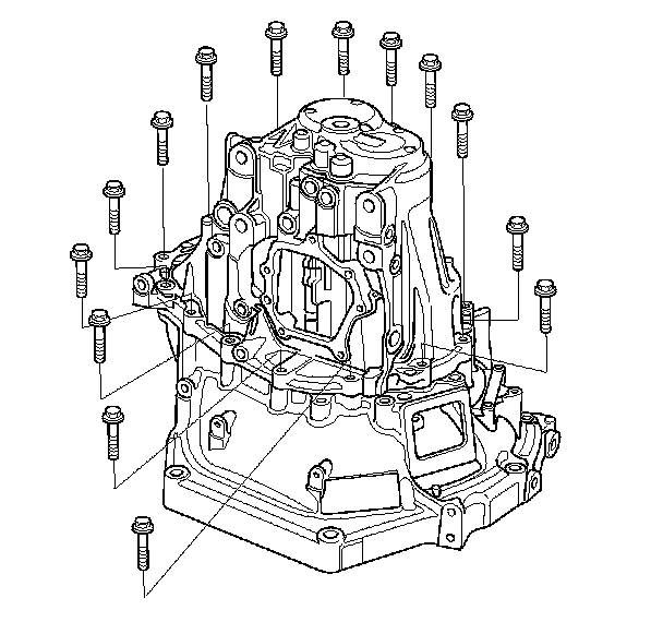 8. Apply liquid gasket, P/N 08717-0004, 08718-0001, 08718-0003, or 08718-0009 evenly to the mating surface of the transmission housing and the clutch housing. Install the component within 5 minutes of applying the liquid gasket.