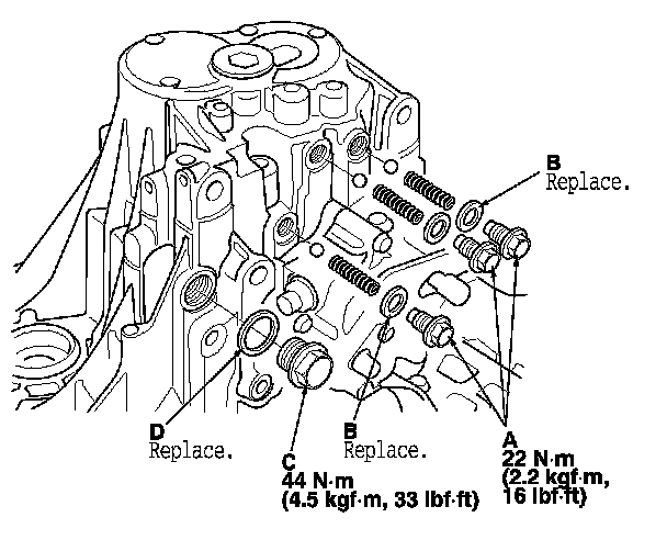 21. Install the 20 mm bolt (C) and new 20 mm washer (D).
