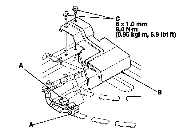 1. Remove the front passenger's seat Front Seat Removal/Installation and pull back the carpet.