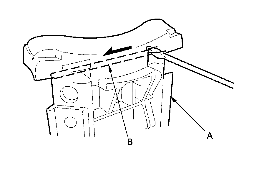 5. From the back of the armrest frame (A), push the edge of the armrest lock pin (B) with a flat-tip screwdriver, then slide the armrest lock pin fully.