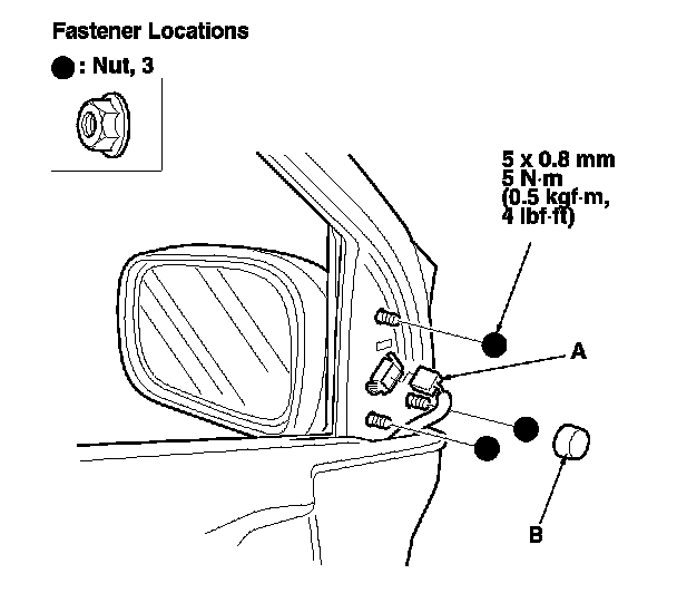 3. Disconnect the power mirror connector (A), and remove the cap (B).