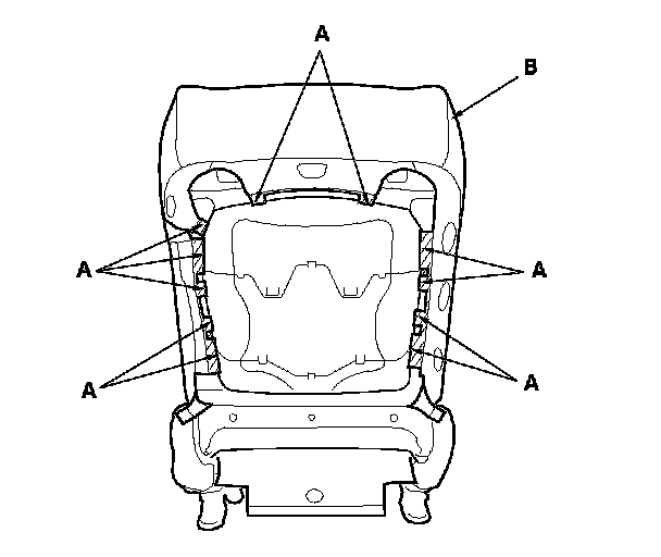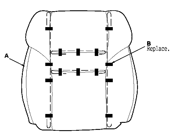 13. Remove the seat-back cover/pad (A) from the seat-back frame (B).