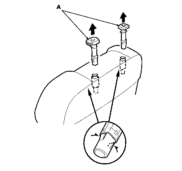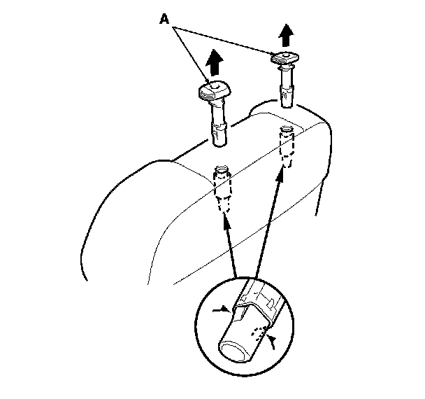 12. Pinch the tabs on the ends of the head restraint guides (A), and remove them from the seat-back.