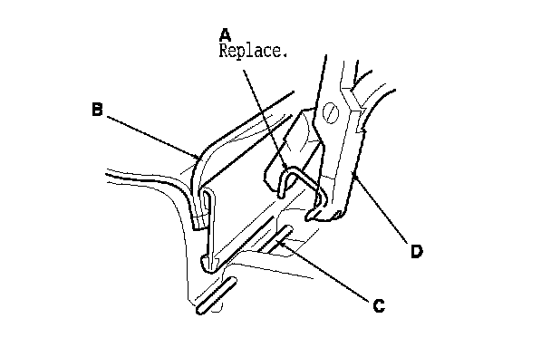 - Replace all of the upholstery rings (A) fastening the seat-back cover (B) to the pad wires (C) with new ones using commercially available upholstery ring pliers (D).