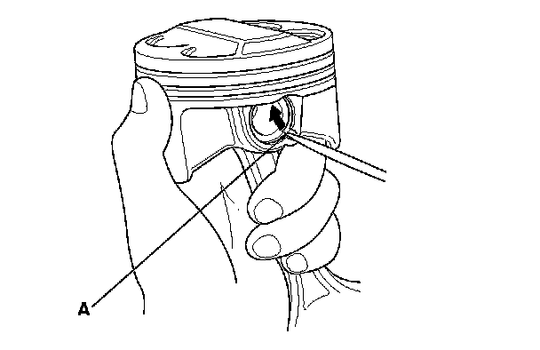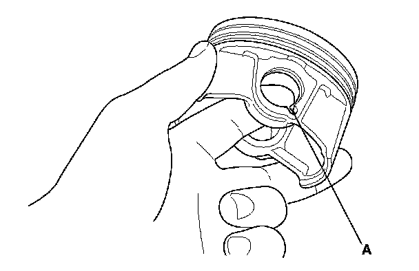 1. Install a piston pin snap ring (A) on one side.