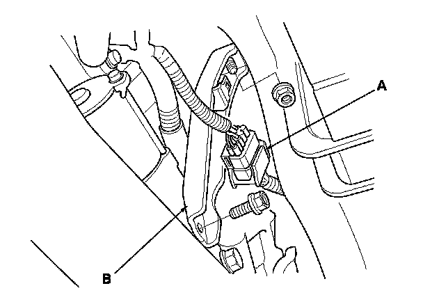 11. Remove the connector (A) from the intake manifold bracket (B), then remove the intake manifold bracket.