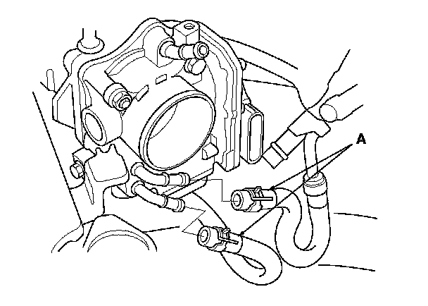 7. Connect the water bypass hoses (A).