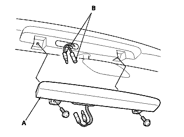 2. Disconnect the terminals (B) and remove the high mount brake light.