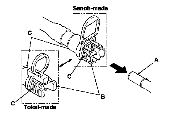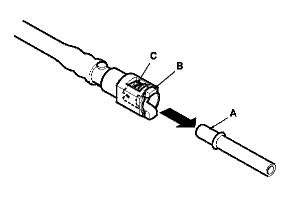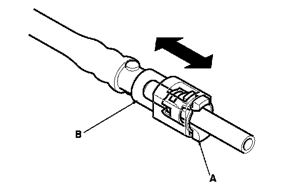2. Insert a new retainer (A) into the connector (B) if the retainer is damaged, or after: