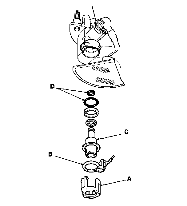 5. Install the parts in the reverse order of removal with new O-rings (D) and a new bracket. When installing the fuel tank unit, align the marks on the unit and the fuel tank. Fuel Tank Unit Removal/Installation