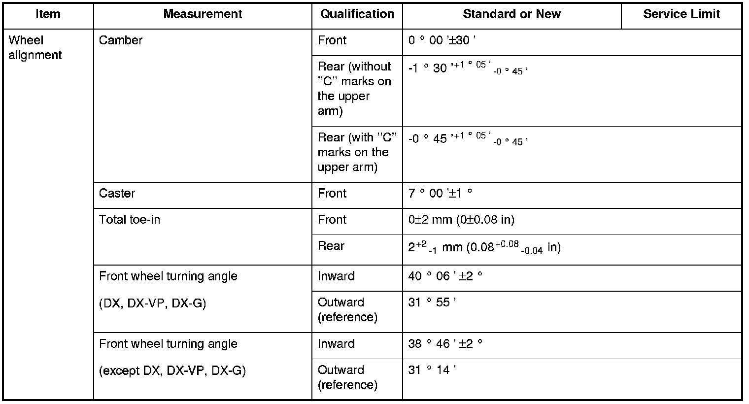 Wheel alignment Specifications