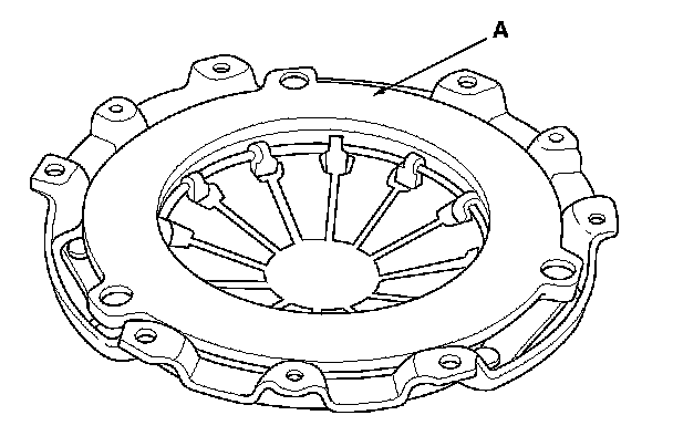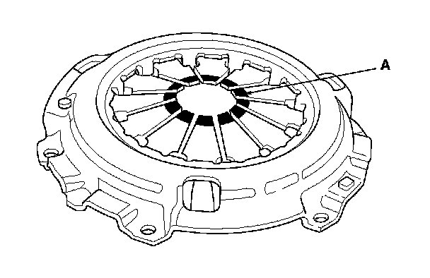 5. Inspect the fingers of the diaphragm spring (A) for wear at the release bearing contact area.