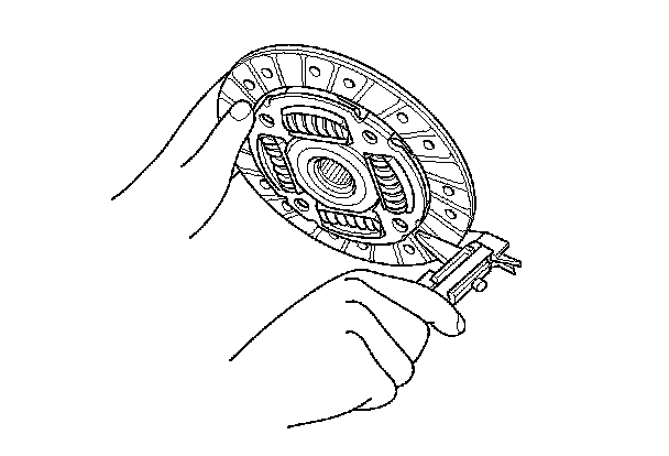 10. Measure the clutch disc thickness. If the measurement is less than the service limit, replace the clutch disc.