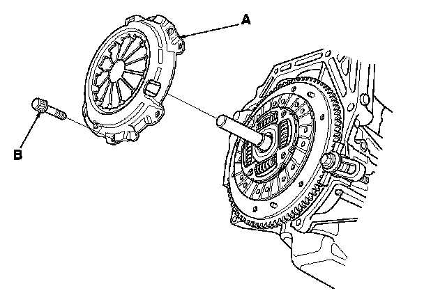 28. Torque the mounting bolts (A) in a crisscross pattern. Tighten the bolts in several steps to prevent warping the diaphragm spring.