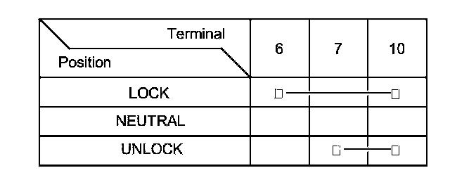 4. If the continuity is not as specified, the key cylinder switch is faulty; replace the door latch.
