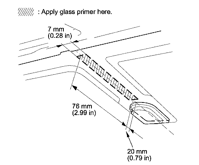 5. Before installing the rearview mirror harness cover base, apply glass primer to the area where the harness cover base will be applied to the inside face of the windshield. Let the primer dry at least 10 minutes, then attach the rearview mirror harness cover base to the windshield within 12 hours.