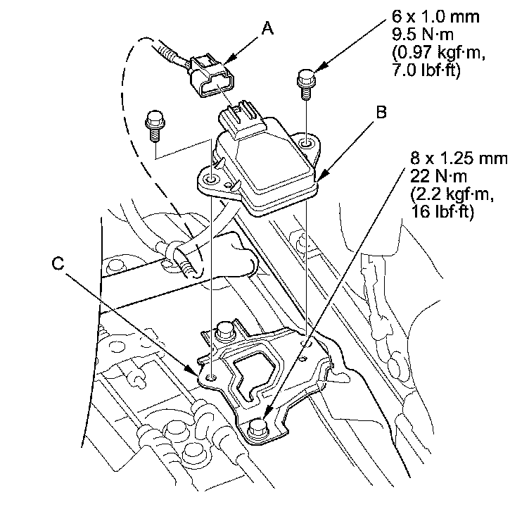 4. Check for deformation in the bracket (C). If necessary replace it.