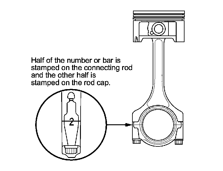 Numbers or bars have been stamped on the side of each connecting rod as a code for the size of the big end. Use them, and the letters or bars stamped on the crank (codes for rod journal size), to choose the correct bearings. If the codes are indecipherable because of an accumulation of dirt and dust, do not scrub them with a wire brush or scraper. Clean them only with solvent or detergent.