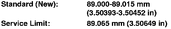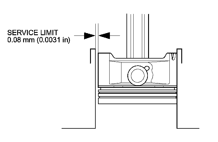 7. Calculate the difference between cylinder bore diameter and the piston diameter. If the clearance is near or exceeds the service limit, inspect the piston and the cylinder bore for excessive wear.