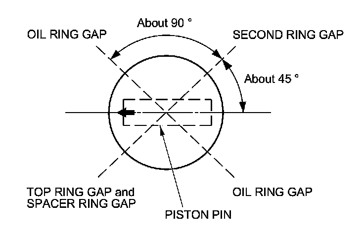 9. Position the ring end gaps as shown: