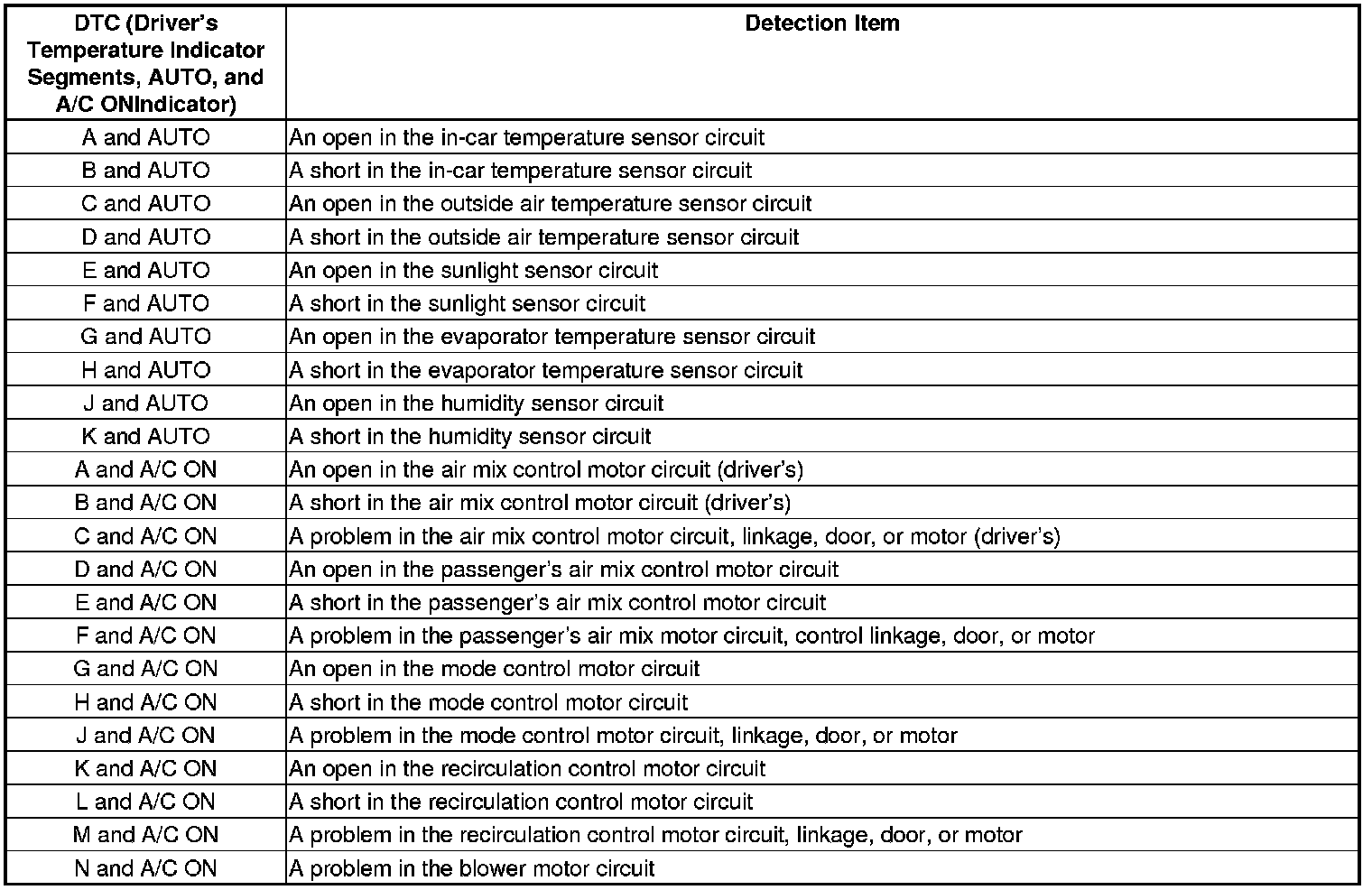 - If there is a problem with the system, the temperature indicator flashes 88, and the A/C ON indicator or the AUTO indicator (or both) also flashes. Segments in the temperature indicator then indicate which DTCs are present.