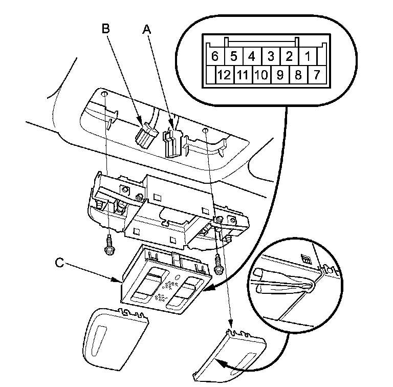 3. Remove the moonroof switch (C) from the map light housing.