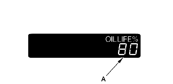 1. The remaining engine oil life (A) is shown as a percentage on the information display. To see the current engine oil life, turn the ignition switch to ON (II), then push and release the SELECT/RESET knob repeatedly until the engine oil life displays.