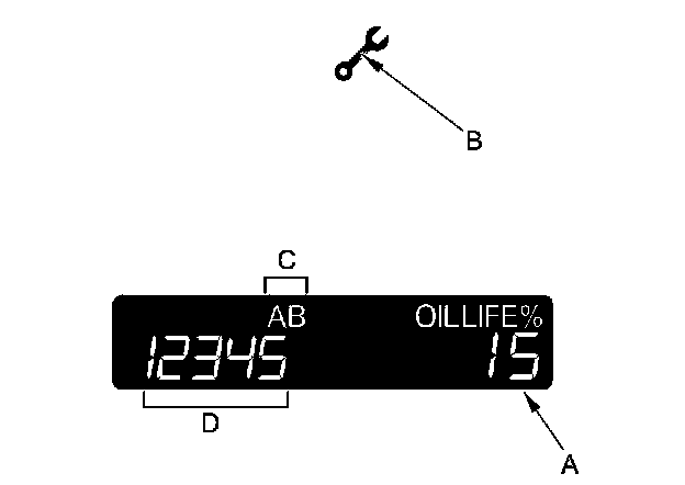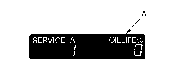 3. When the ignition switch is ON (II), and the remaining engine oil life is 5 % to 1 %, the message "SERVICE" (A) is displayed along with engine oil life and the same maintenance item code(s).
