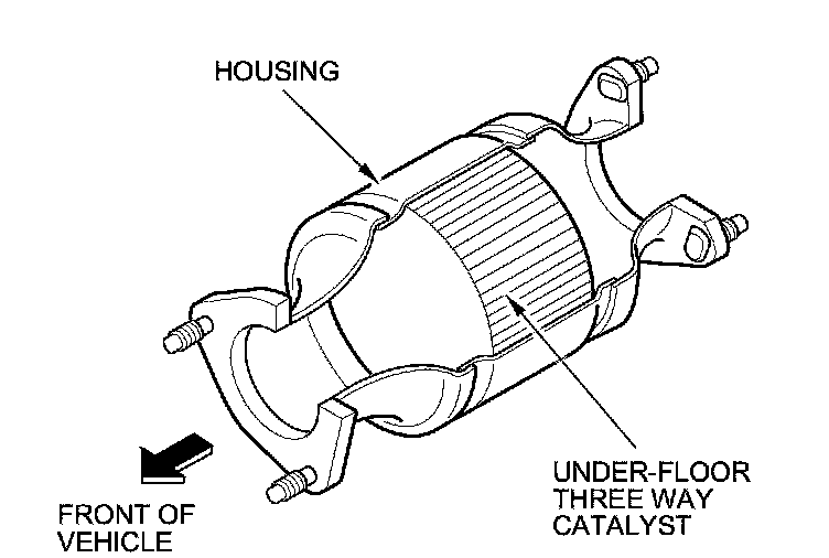 The WU-TWC/Under-Floor TWC converts hydrocarbons (HC), carbon monoxide (CO), and oxides of nitrogen (NOx) in the exhaust gas to carbon dioxide (CO2), nitrogen (N2), and water vapor.
