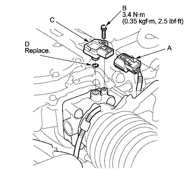 Install the parts in the reverse order of removal with a new O-ring (D).